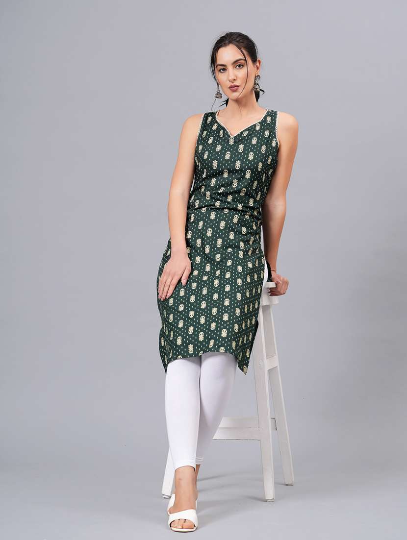 women sleeveless straight kurta