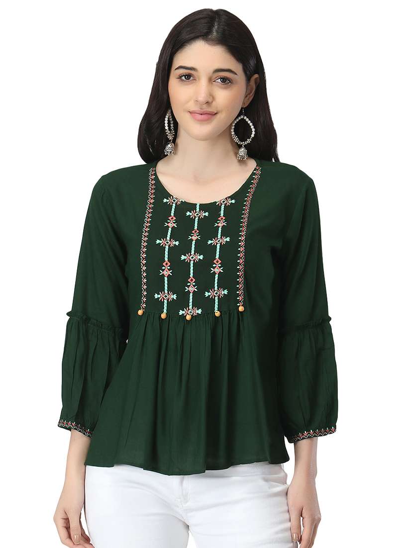- » green round neck embroidered tunic