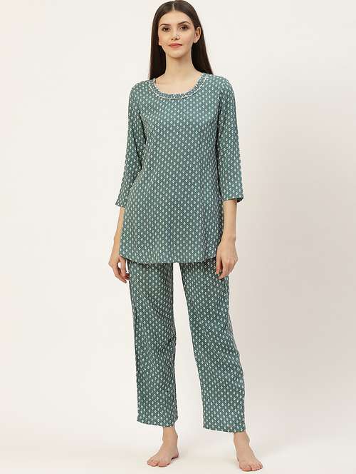 - After a long tiring day, slip into something homely, shop for the all-new collection of nightwear sets for ladies in S sizes and gorgeous green designs and colors.