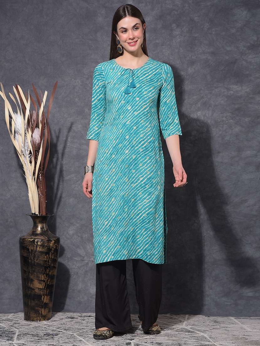 - » women leheriya three quarter sleeve straight kurta