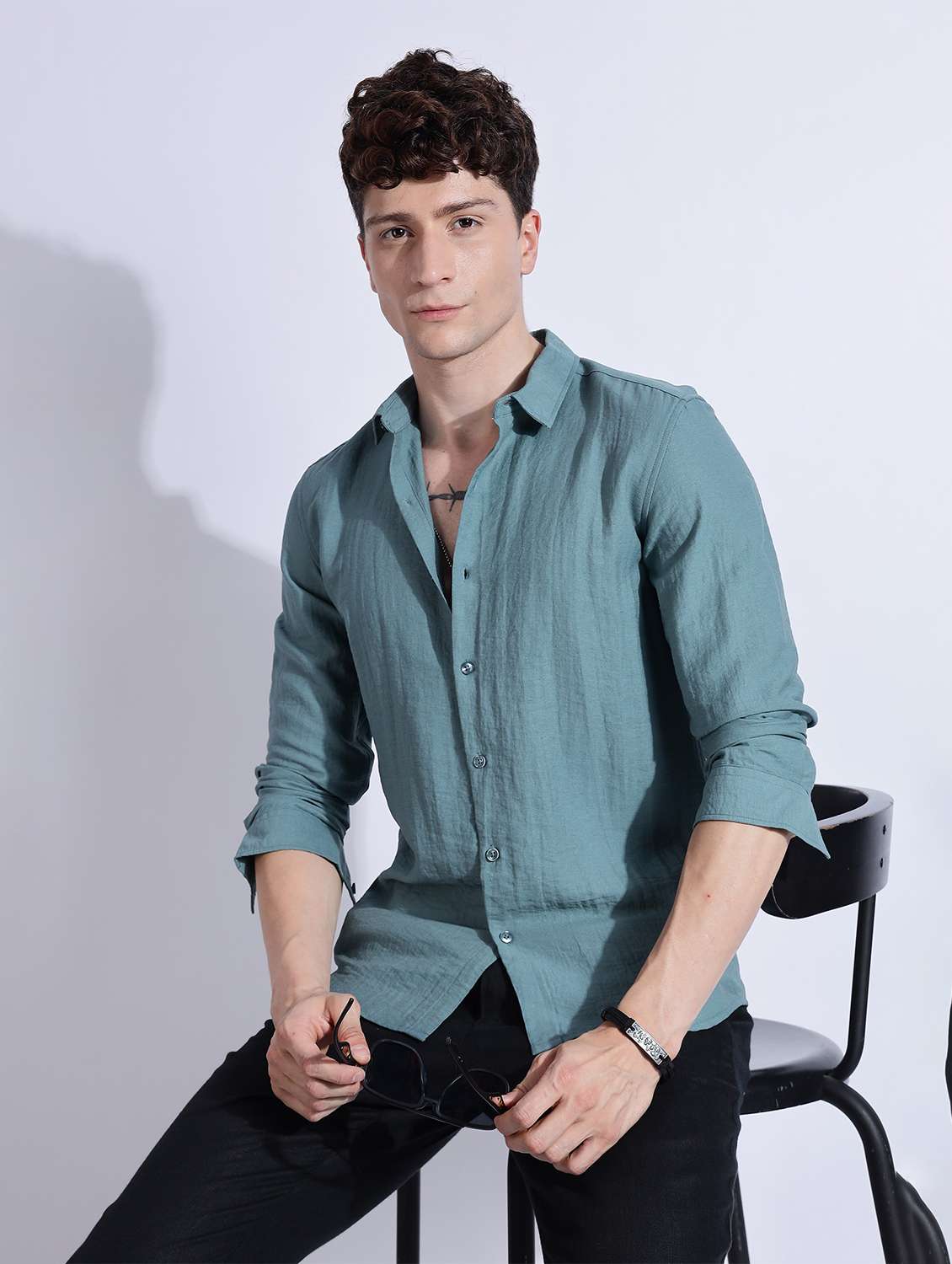 men solid collared long sleeve regular fit shirt