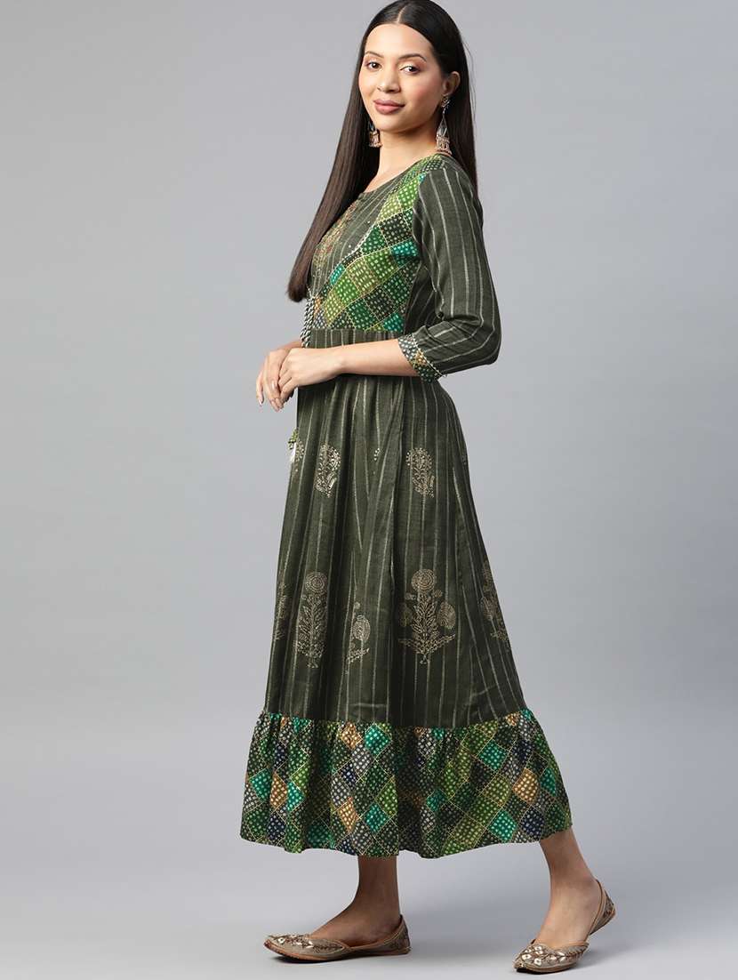 - » green flared ethnic dress