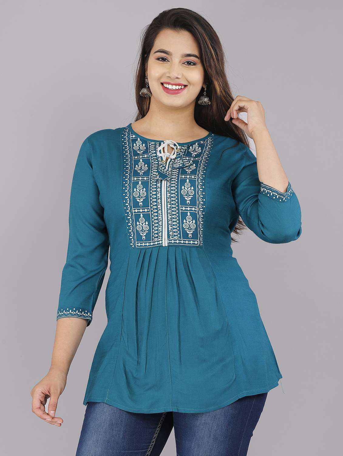 - Are tunics your first love? Well, lay your hands on a spectacular collection of tunics from SANU FASHION and flaunt them in teal colours.