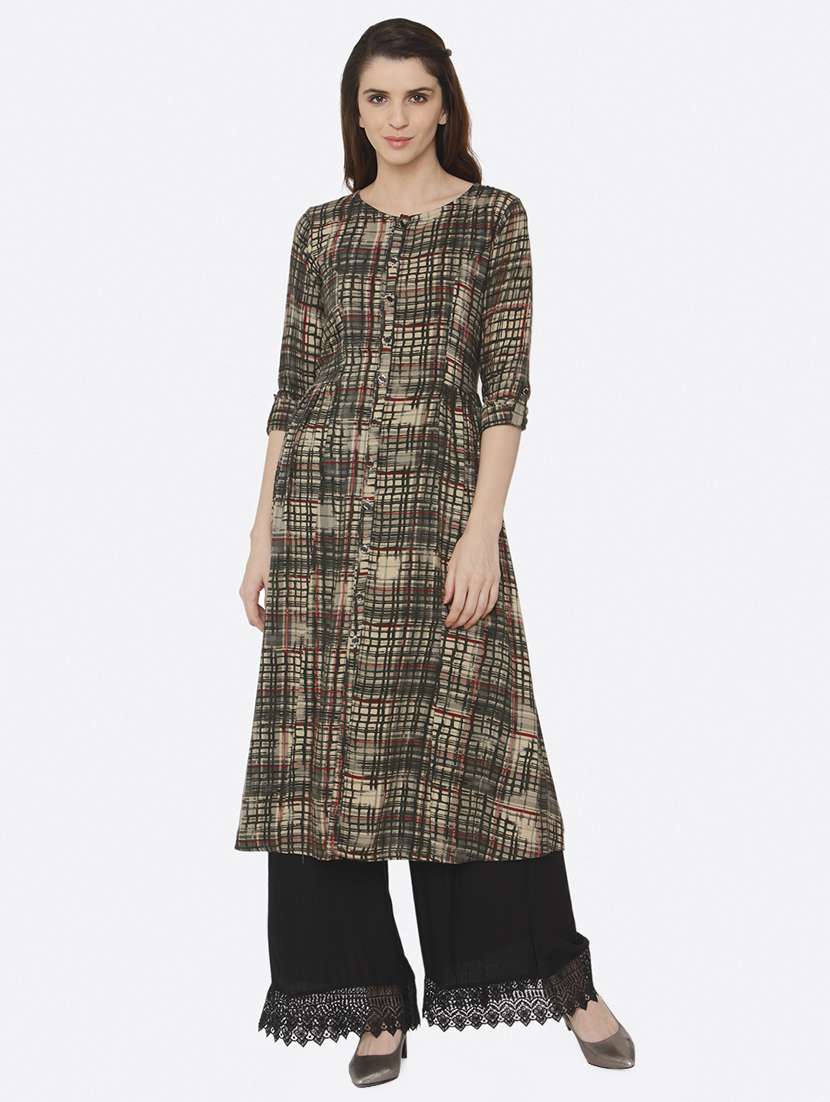 a-line checkered kurta - 16013217 - Very Small Image - 1