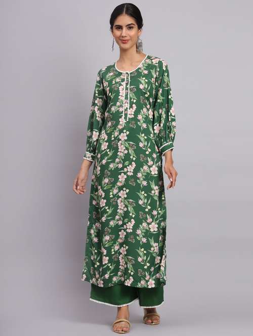 - Find gorgeous sets of ethnic wears in trending designs in green colors suitable for a number of occasions.