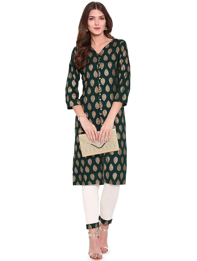 gold print kurta pant set