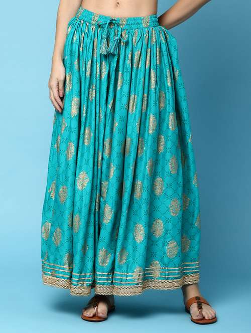 - » women foil print mid rise flared skirt