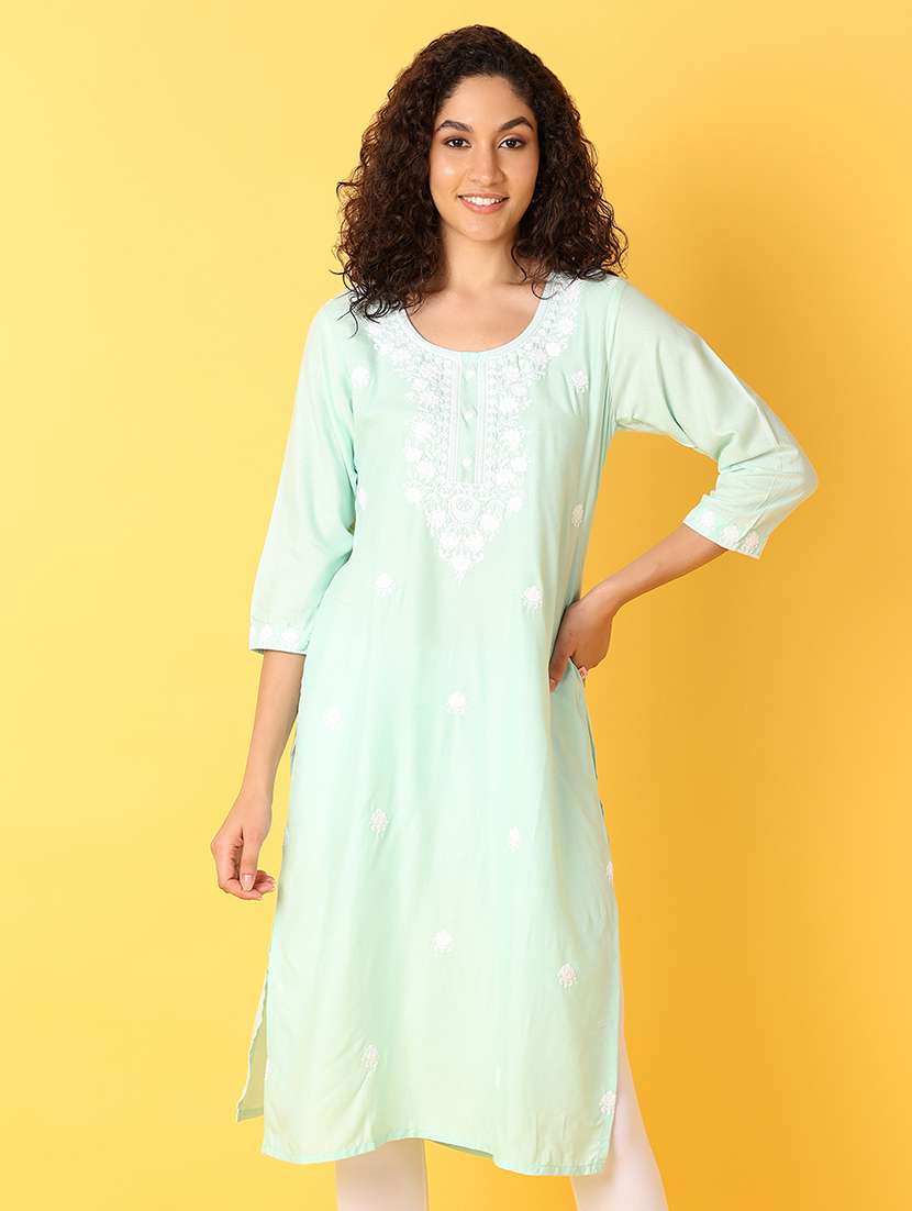women sea green rayon straight kurta