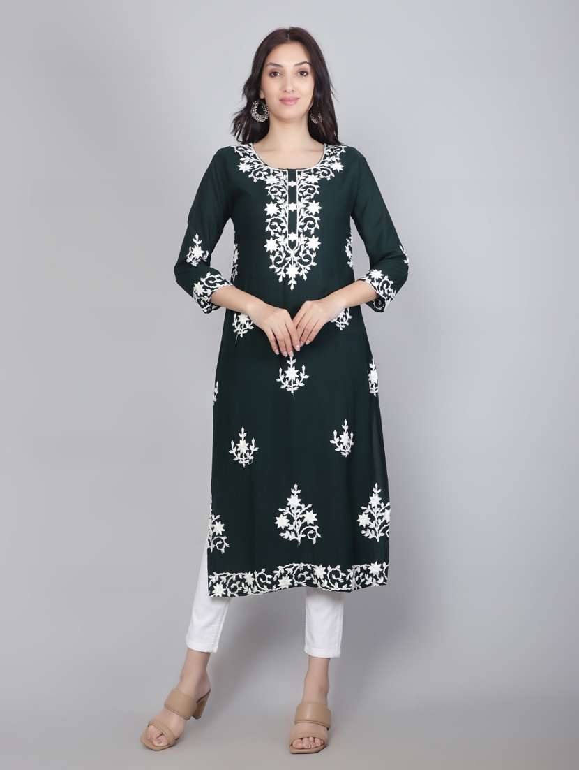 Vairagee Rayon Kurta With Lucknowi Chickenkari Work