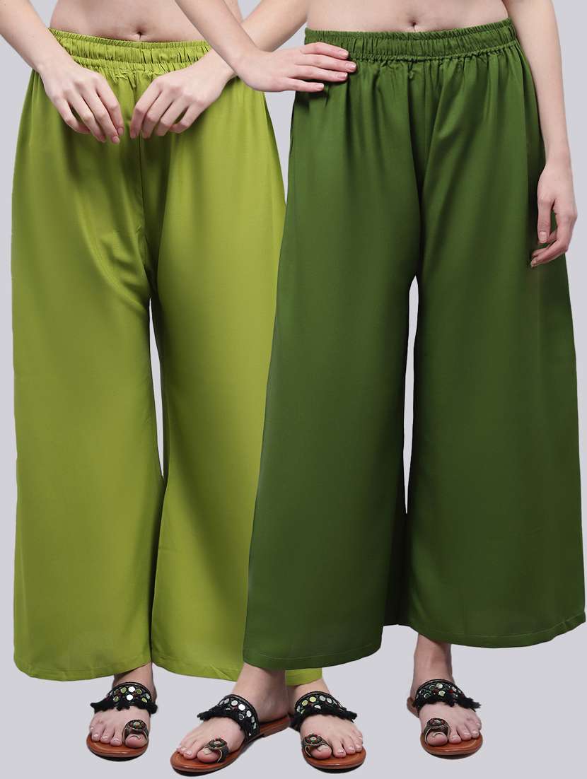 Upgrade your collection of warm-weather staples with these top-notch Light Olive and Light Green palazzo combo by Valles365. Pair them with a flowy tee and lace-up sandals for a super chic look.