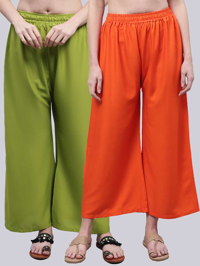 Upgrade your collection of warm-weather staples with these top-notch Dark Orange and Light Green palazzo combo by Valles365. Pair them with a flowy tee and lace-up sandals for a super chic look.