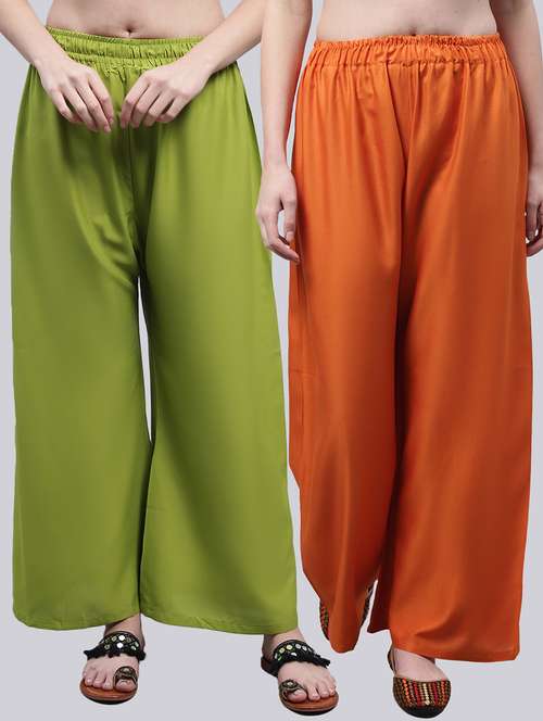 Upgrade your collection of warm-weather staples with these top-notch Rust Orange and Light Green palazzo combo by Valles365. Pair them with a flowy tee and lace-up sandals for a super chic look.