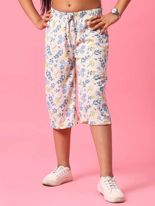 - » girls floral printed mid rise three-fourth