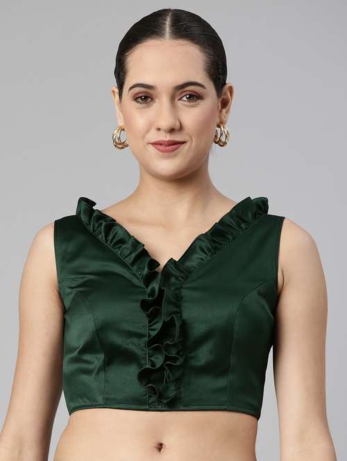 - » green solid satin blouse