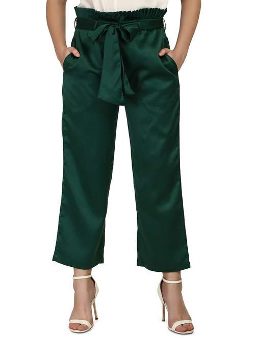 Give edge to your fashion game in this subtle wine color waist frill tie-up belt trouser. Its smooth to skin fabric will give you soft feel to your skin & two pcokets to slip in essentials.