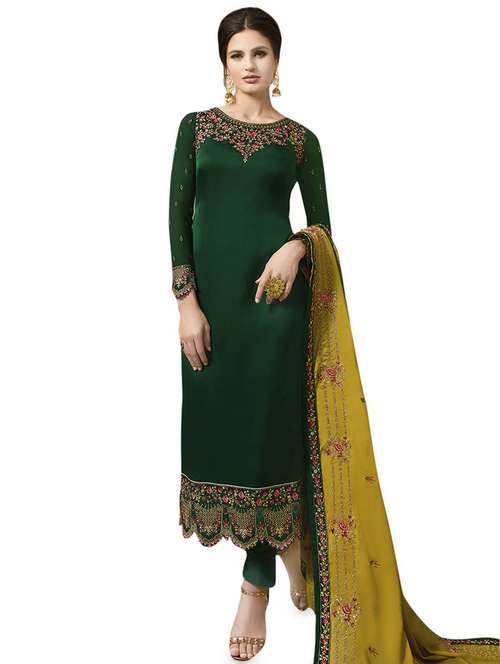 - » embroidered semi-stitched suit