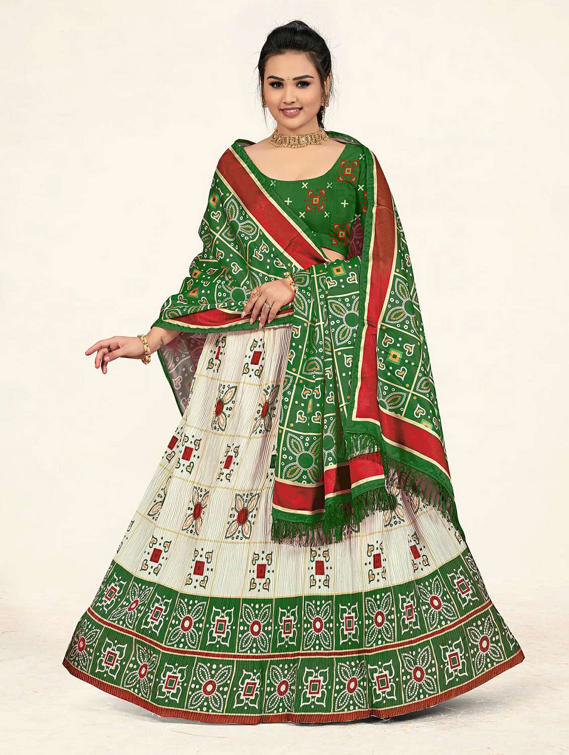 Sweet smile designer lehenga choli set with dupatta-dark green