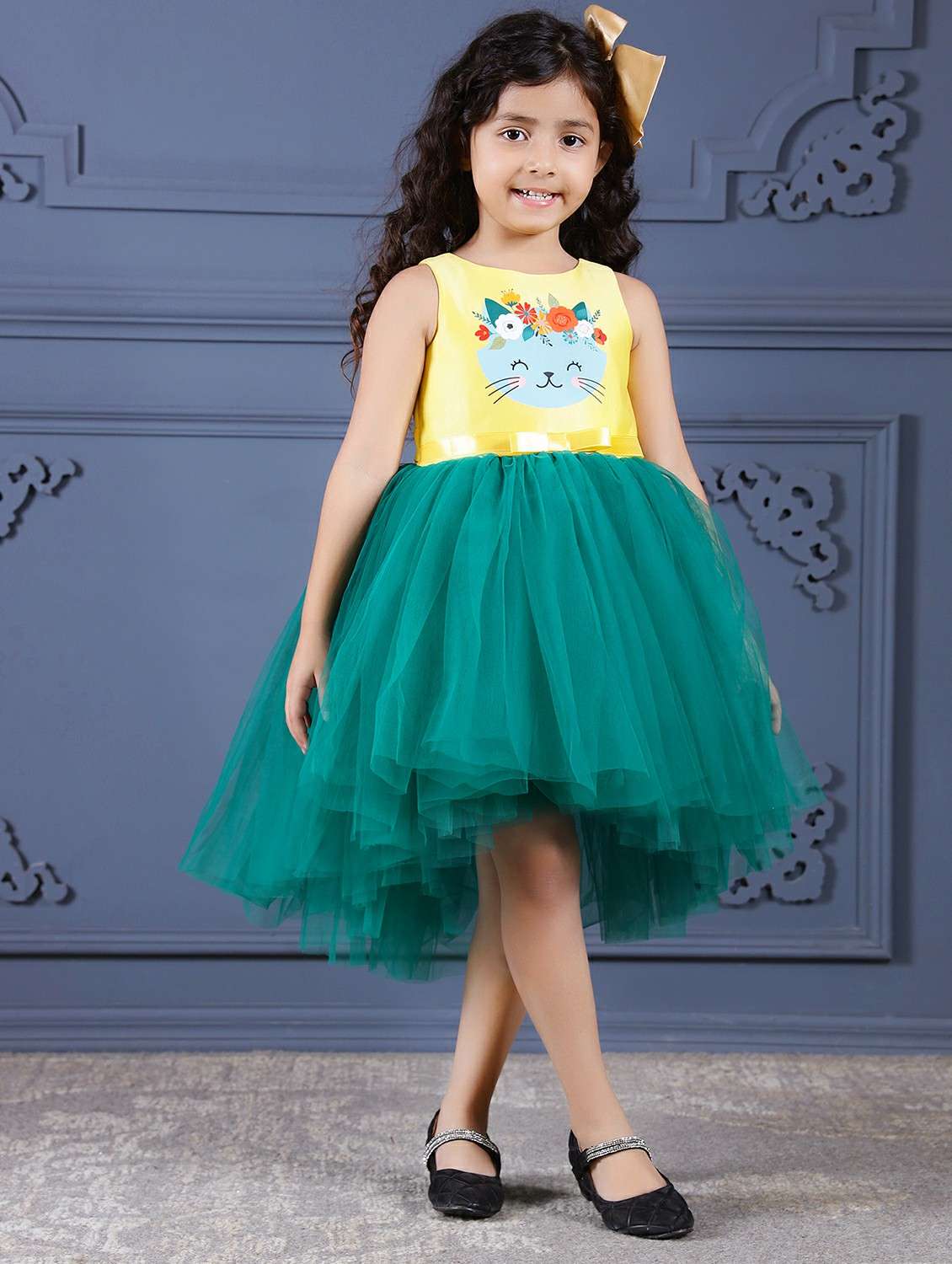 Toy Balloon Kids Green Hi Low Girls Party Wear Dress