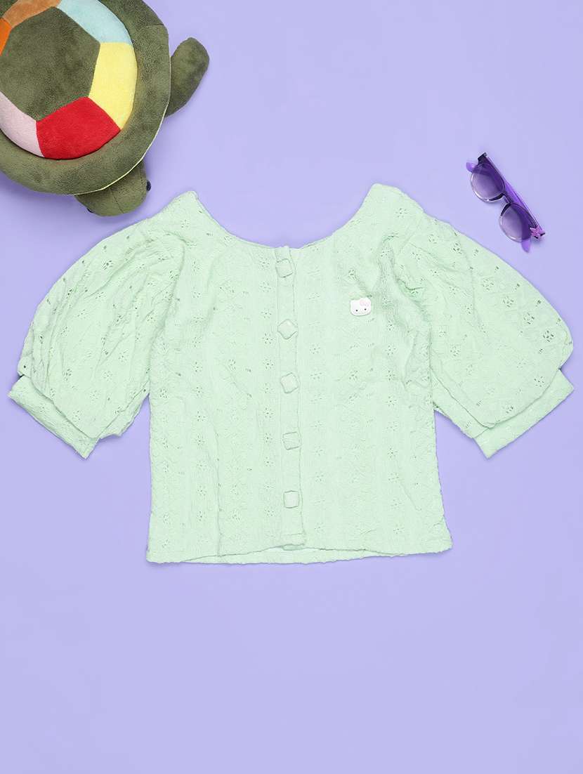 girls solid puff sleeve schiffli top