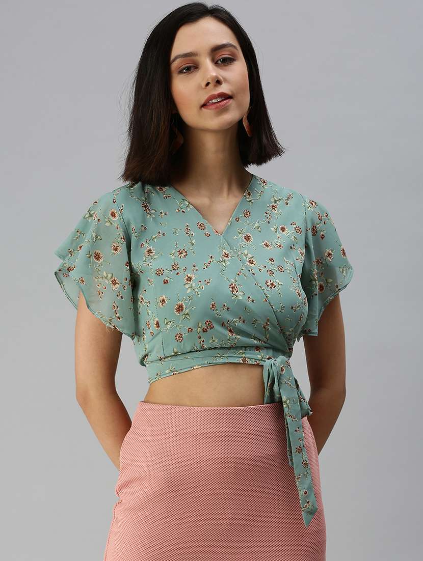women's crop overlap neck top