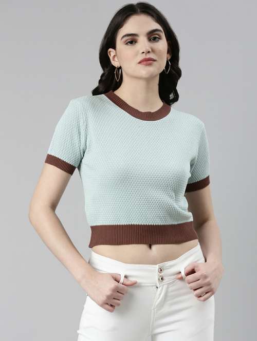 - » women's crop round neck top