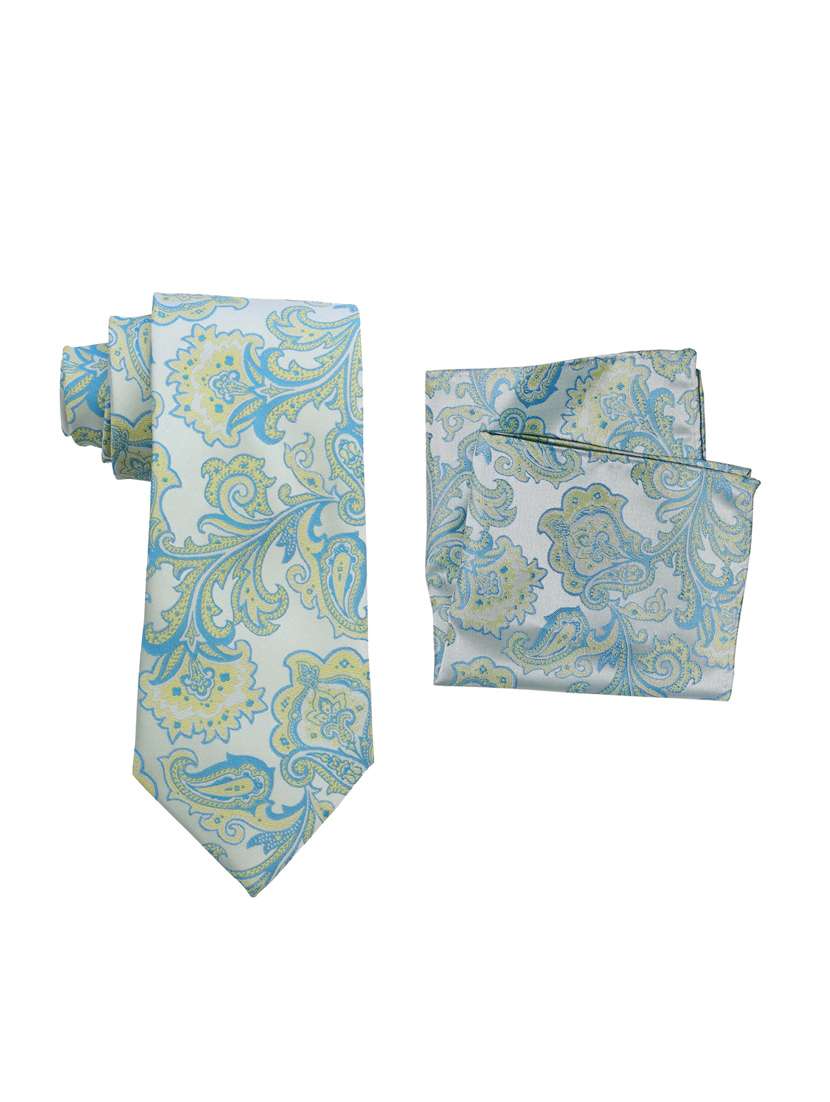 blue silk  tie and pocket square combo - 16178645 - Very Small Image - 1