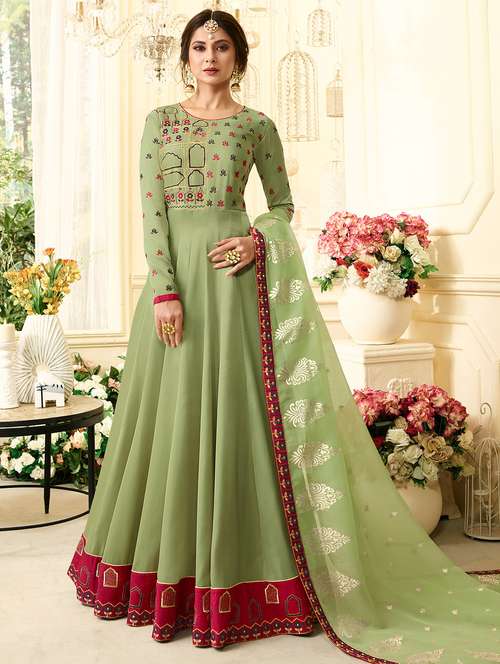 - » embroidered semi-stitched anarkali suit
