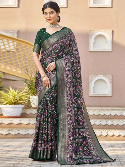women printed bordered saree with blouse