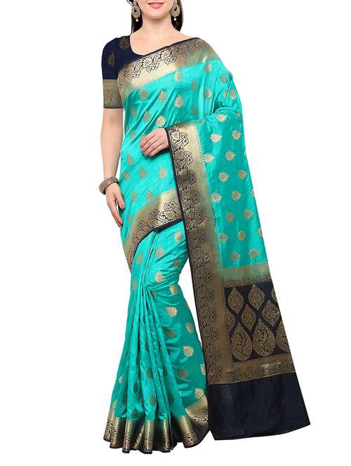 turquoise banarasi silk saree with blouse - 15023141 - Very Small Image - 1
