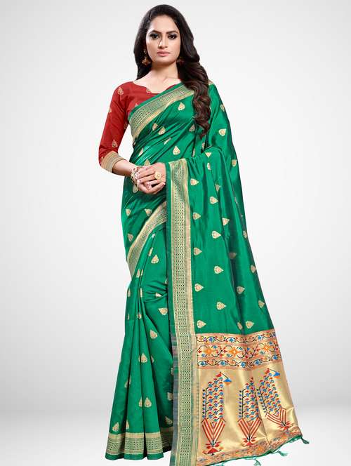 ethnic motif printed saree with blouse - 16962897 - Very Small Image - 1