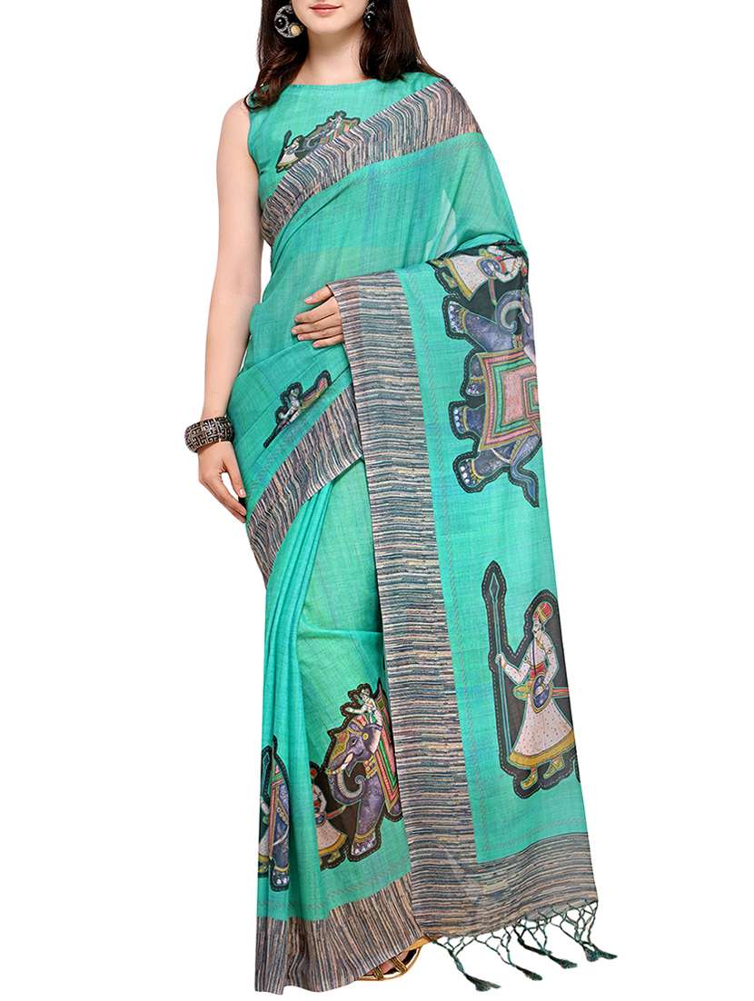 - » turquoise silk blend maheshwari saree with blouse