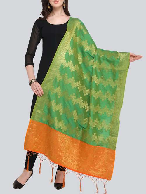 - » green self designed banarasi dupatta