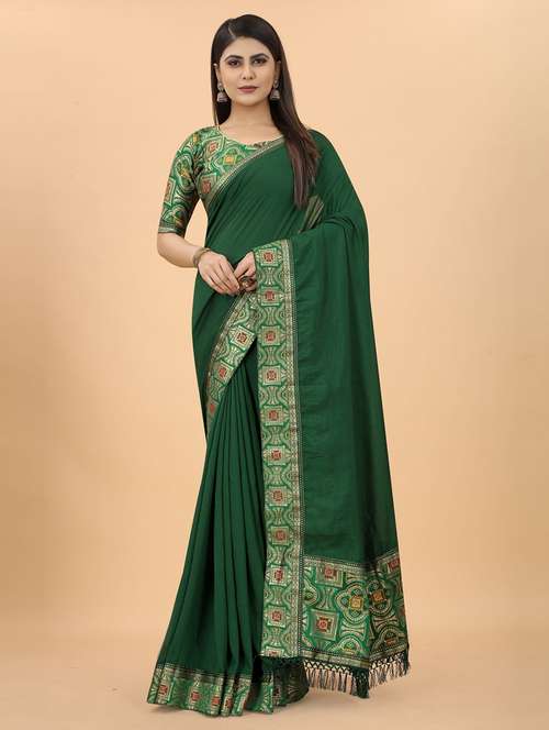 - » women's self design dark green colored saree with blouse