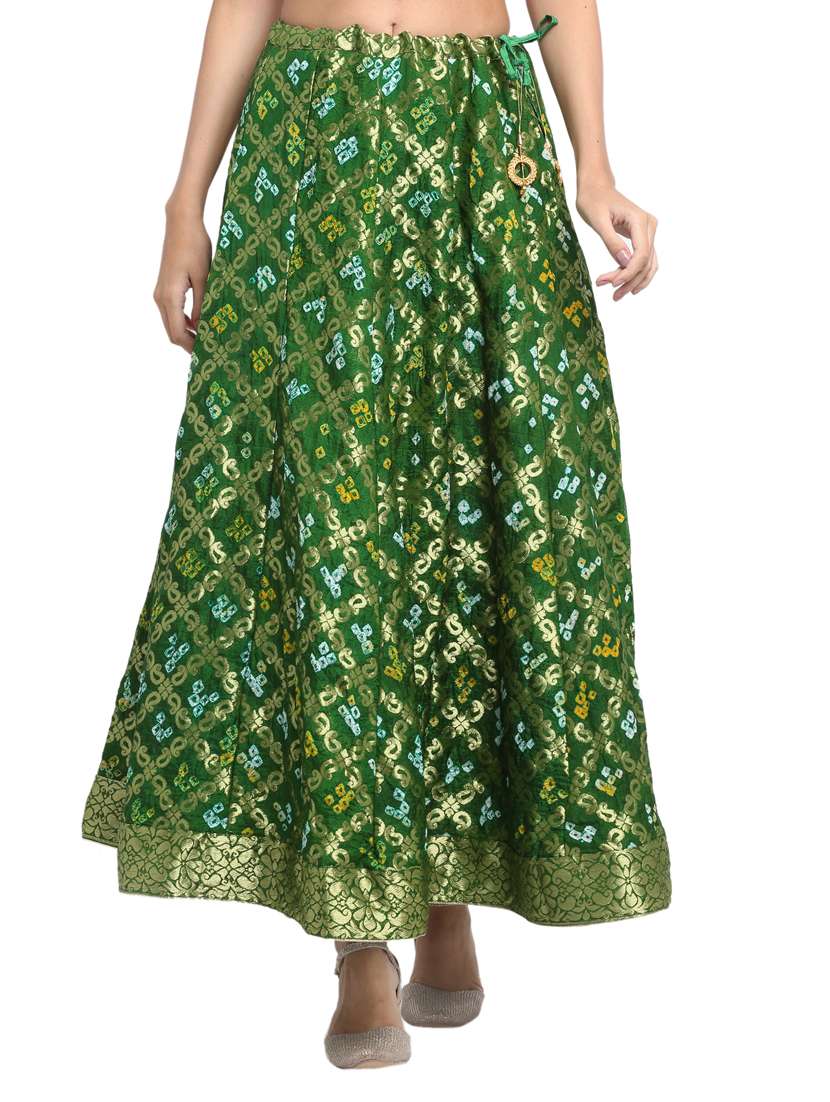 green silk blend flared skirt