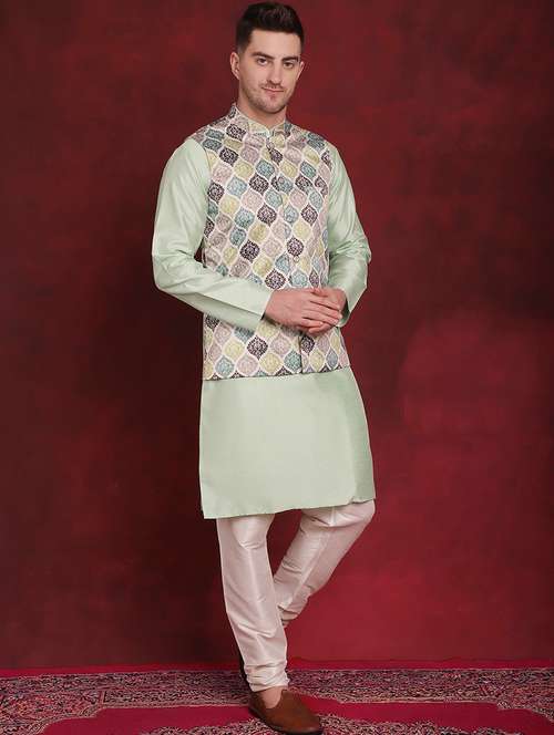 - » men solid kurta pyjama set with printed jacket