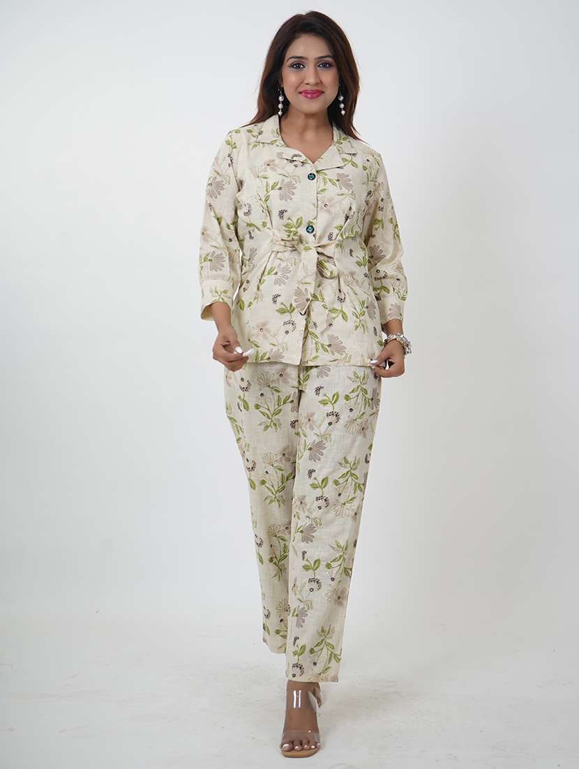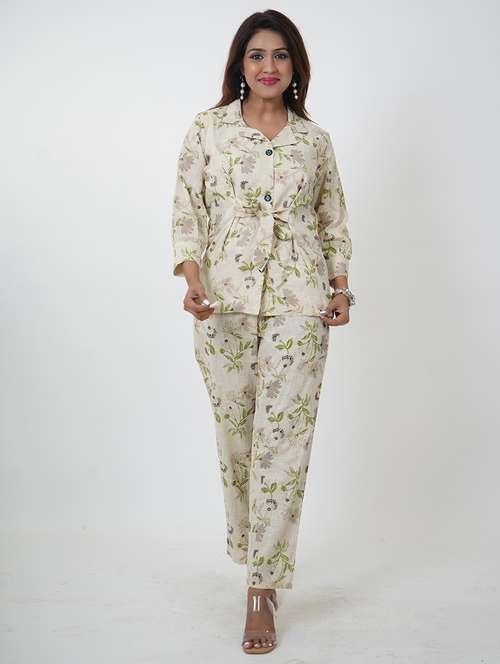 - » women off-white floral top and trouser co-ords