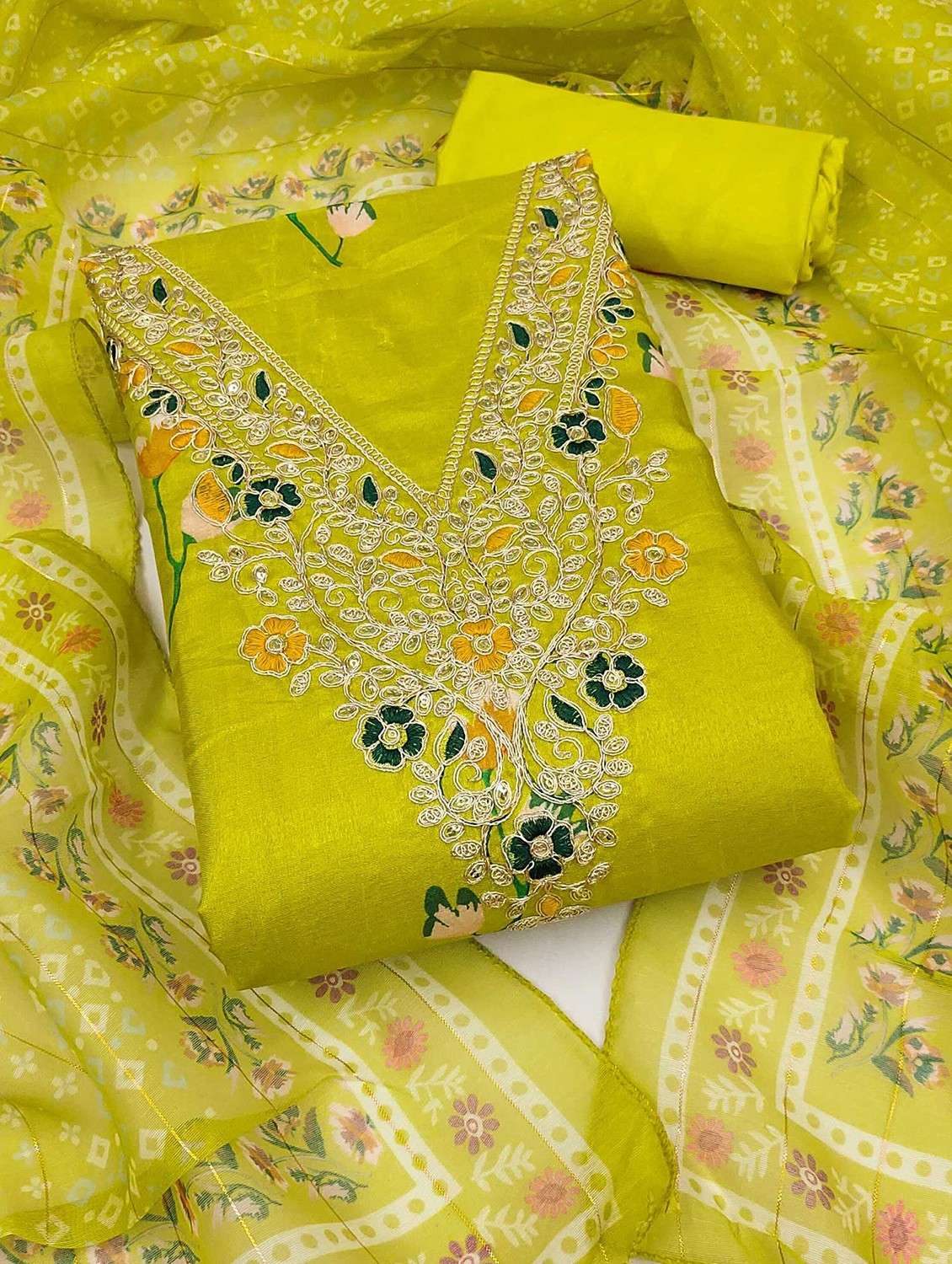 - Look ultra gorgeous in unstitched suits from Peachmode and grab these beautiful suits in lime colour.