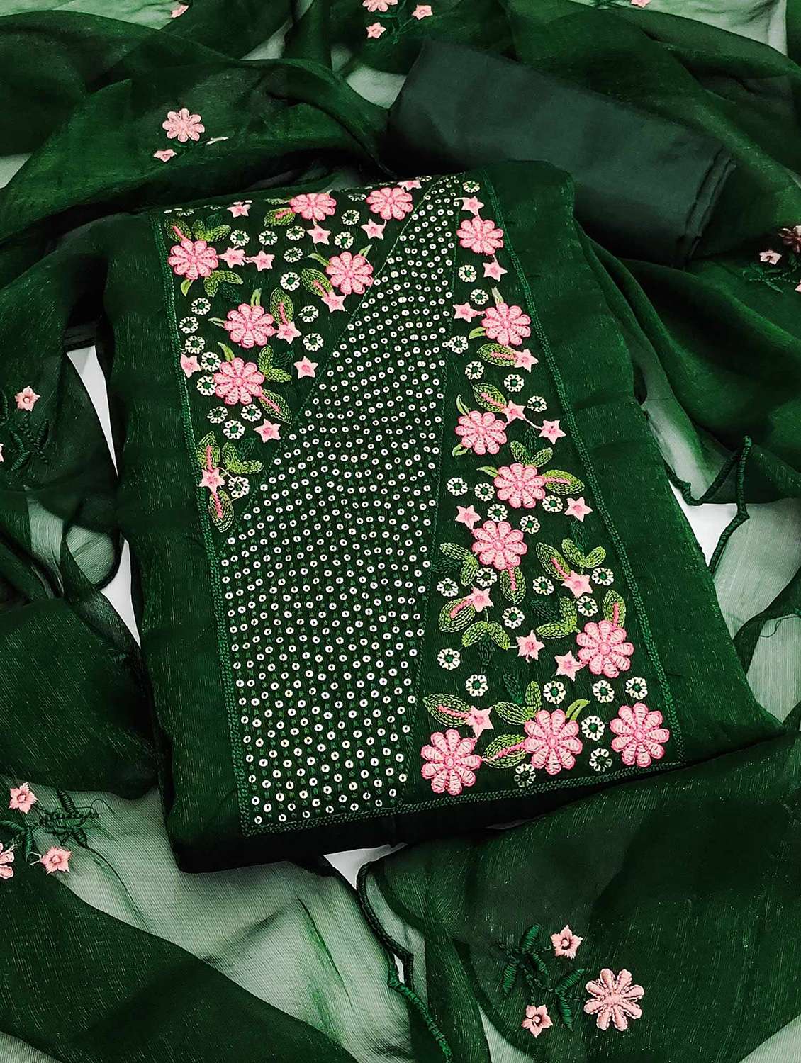 - Look ultra gorgeous in unstitched suits from Peachmode and grab these beautiful suits in green colour.