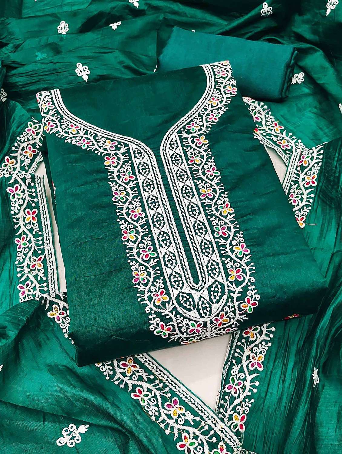 - Look ultra gorgeous in unstitched suits from Peachmode and grab these beautiful suits in green colour.