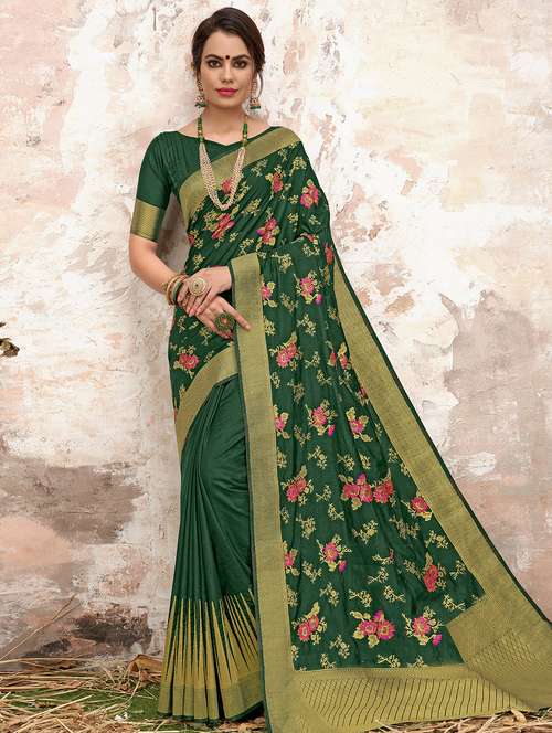 - » women's floral bottle green colored saree