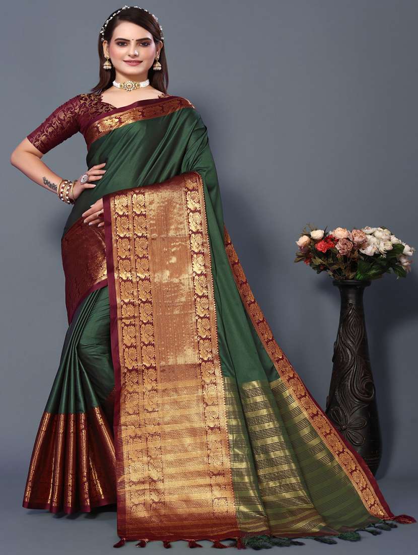 - » women solid bordered saree with blouse