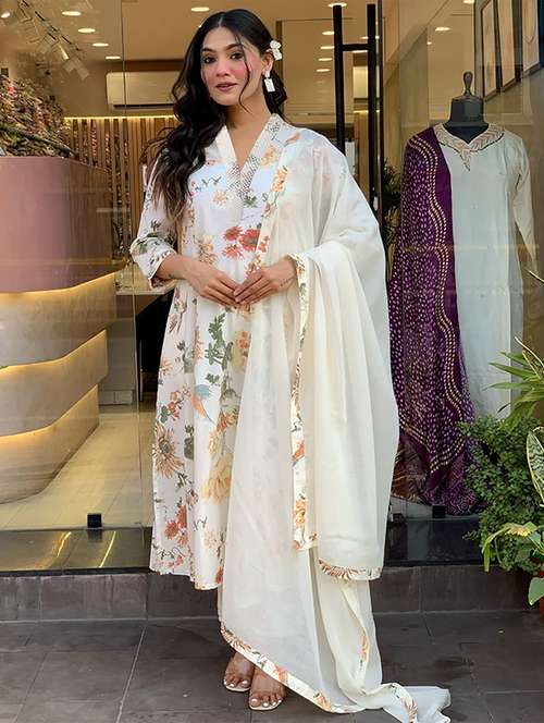 - » women floral three quarter sleeve kurta pant with dupatta set