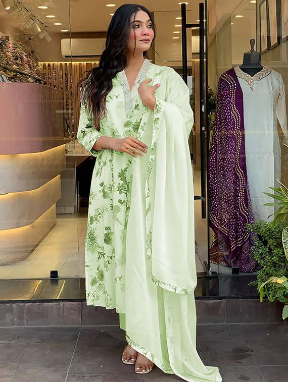 - Find gorgeous sets of ethnic wears in trending designs in neo mint colors suitable for festive wear of occasions.