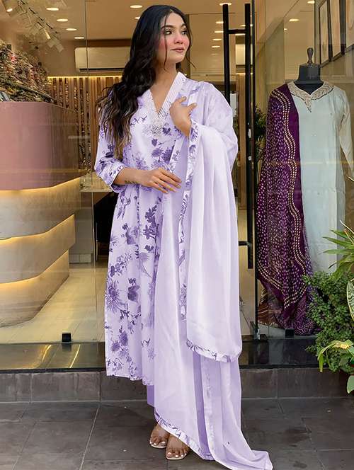 - Browse through the latest range of ethnic sets for women with tailored sleeve designs with lace works.