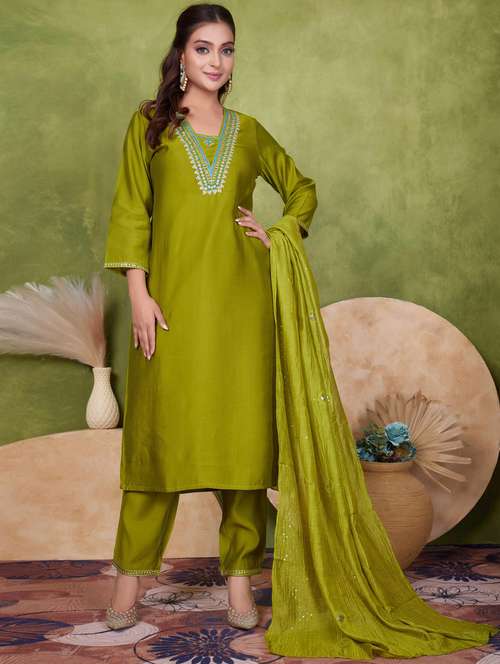 - Find gorgeous sets of ethnic wears in trending designs in green colors suitable for festive wear of occasions.