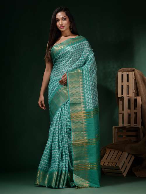 women's chevron green colored saree with blouse - 19916880 - Very Small Image - 1