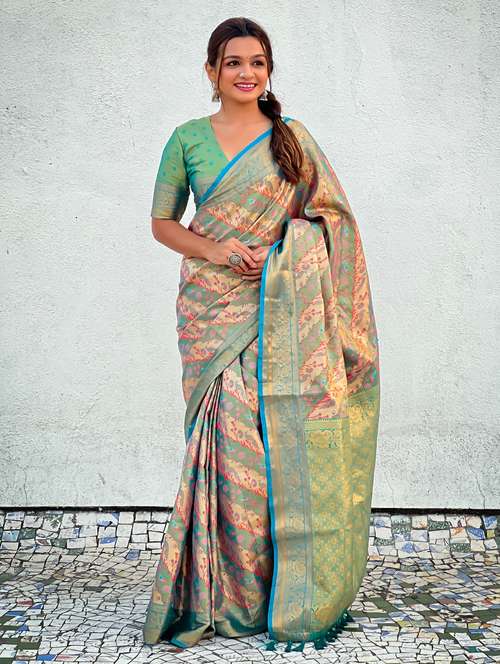 women self design banarasi saree with blouse