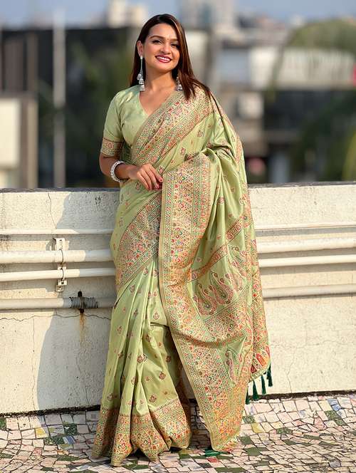 leeli peeri designerWomen's Soft Silk Woven Zari Work Saree With Unstitch Blouse Piece