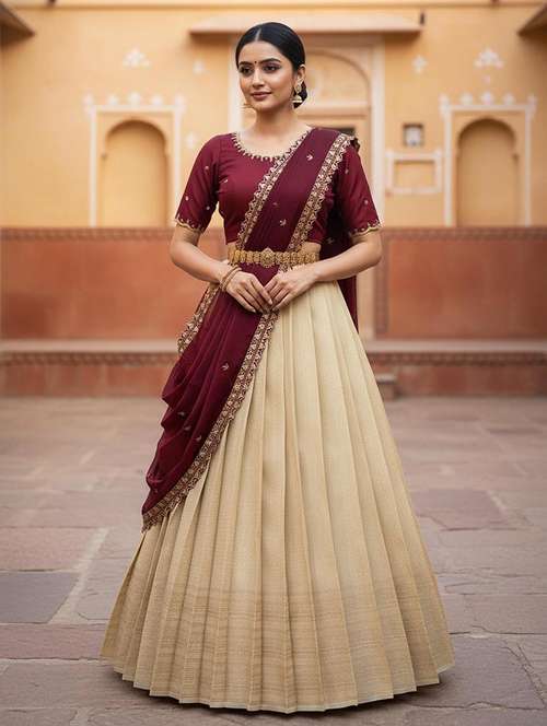 women self design south indian style unstitched lehenga choli set