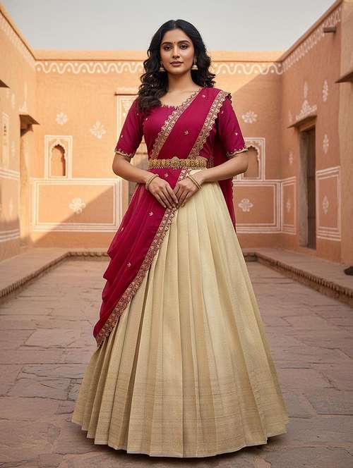 - » women self design south indian style unstitched lehenga choli set